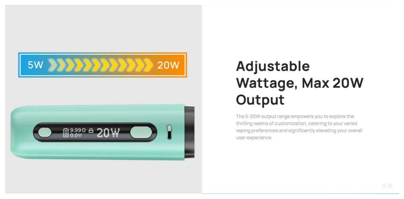 該設備配備 0.69 吋 OLED 螢幕,可提供卓越的最大 20W 輸出,