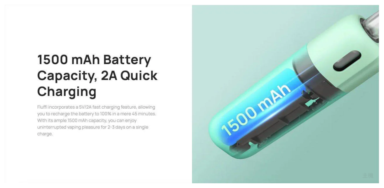 Fluffi 是一款多功能 MTL 和 RDTL 電子煙設備,其強大功能源自於強大的 1500 mAh 電池。